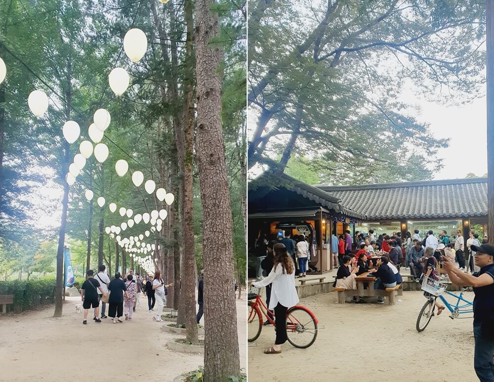 La aldea Jeonju Hanok village está lleno de cada tradicional reconstruida pero se ofrece un ambiente muy bonito por las callejores entre techos de casa tradicional, galerias de artesanias, coquetas cafeterias junto con el mirador Omokdae sobre el bosque de pinos.