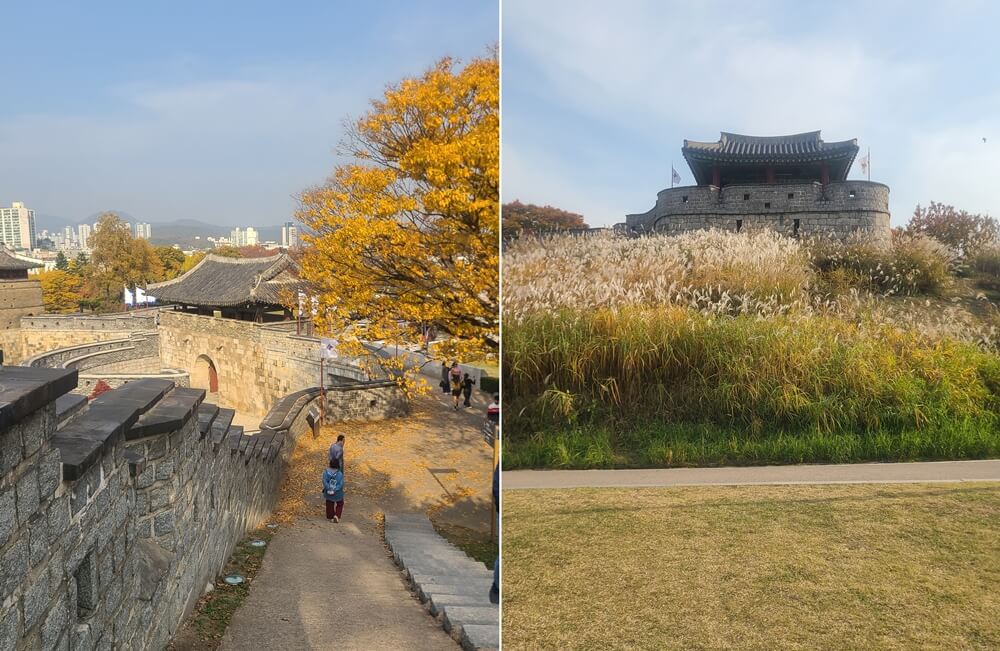 La fortaleza Suwon Hwaseong es un destino muy conocido como el patrimonio cultural por la UNESCO. Es un lugar historico pero al mismo tiempo nos ofrece un ambiente muy hermoso con jardin verde.